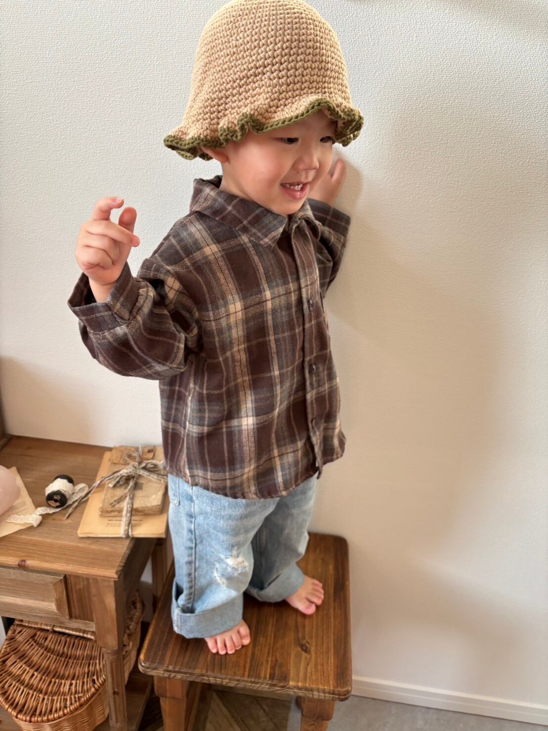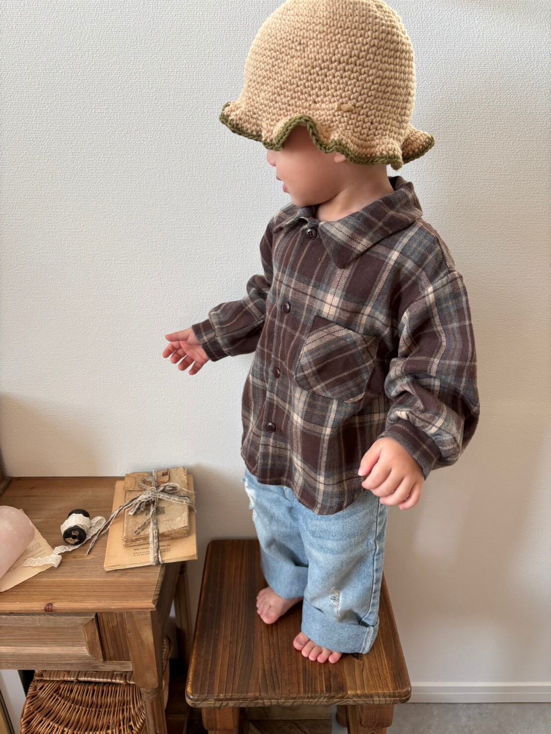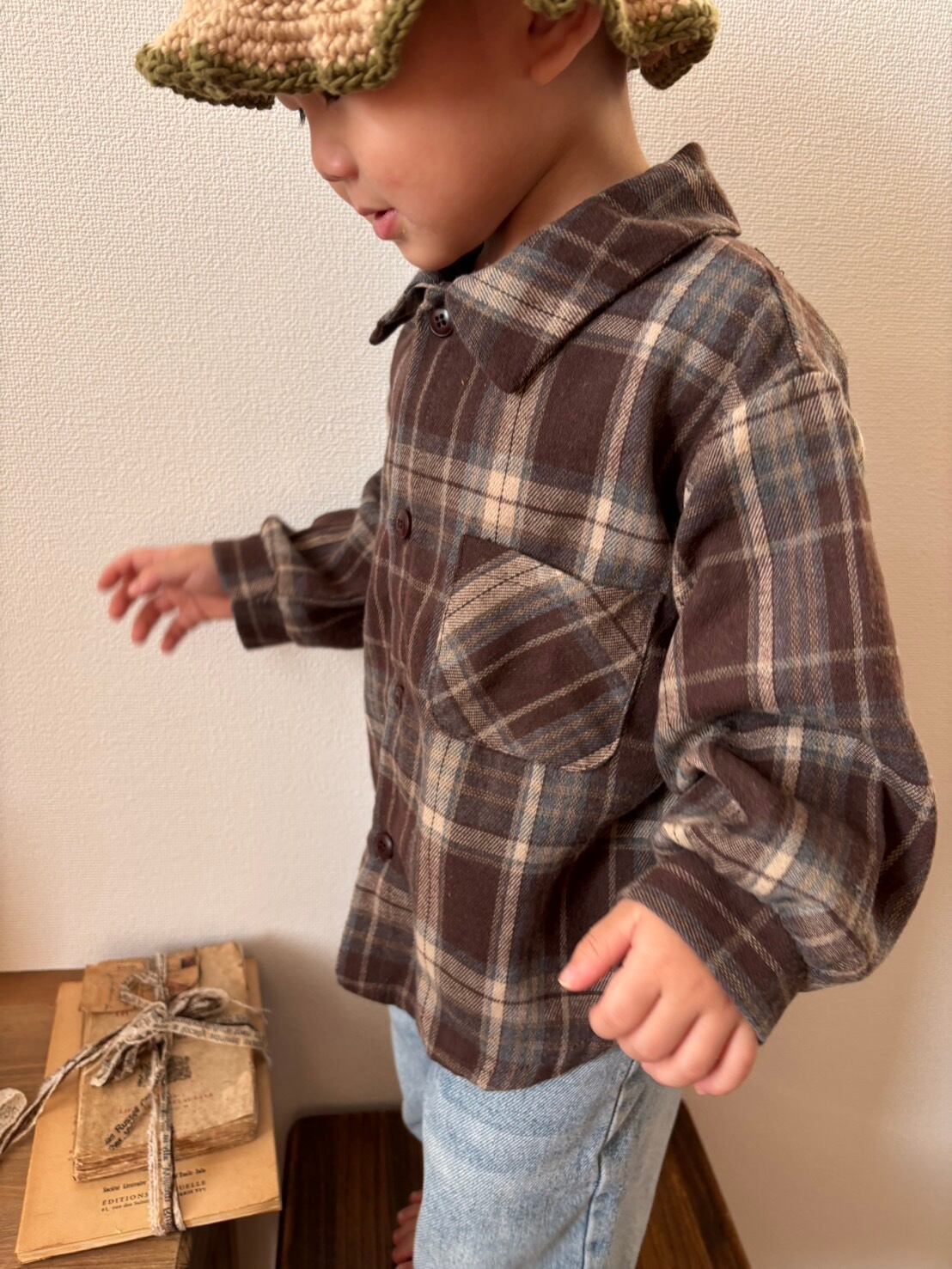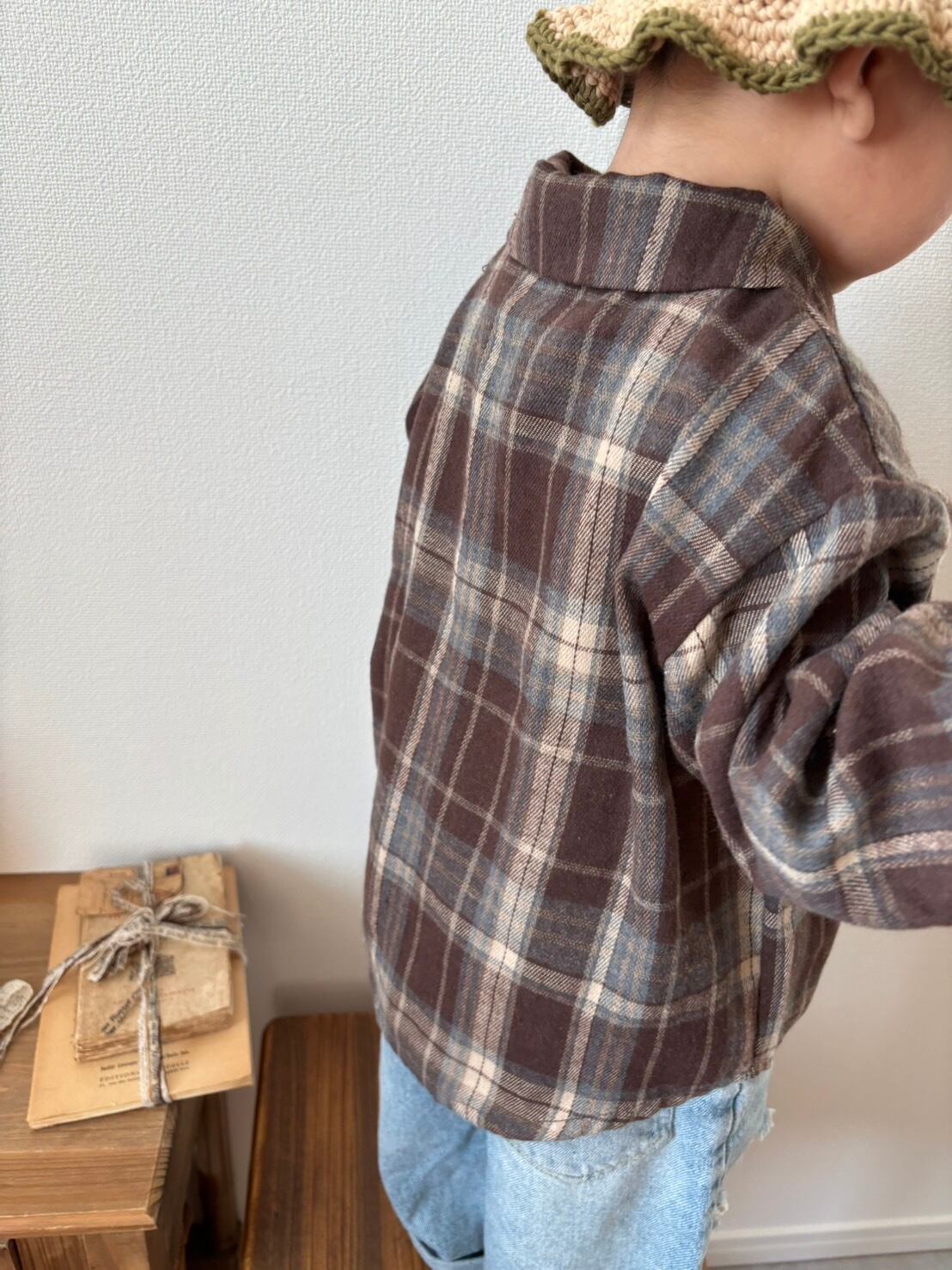 【即納】onu / autumn check shirt (brown)